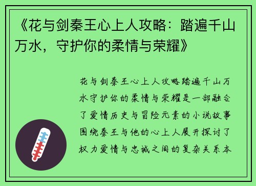《花与剑秦王心上人攻略:踏遍千山万水,守护你的柔情与荣耀》