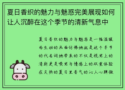 夏日香织的魅力与魅惑完美展现如何让人沉醉在这个季节的清新气息中