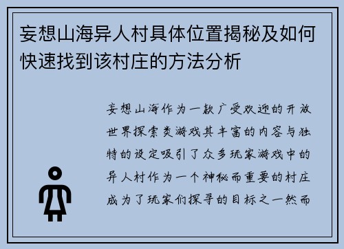 妄想山海异人村具体位置揭秘及如何快速找到该村庄的方法分析